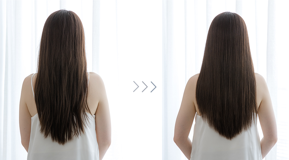 毛先にトリートメントを塗布し、ブラシで伸ばすことで、毛先までムラなく行き渡らせます。