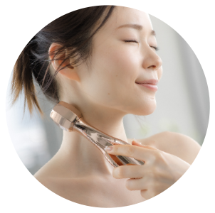 ブラッシングによる頭皮マッサージに加ネ、ローラーでお顔やデコルテを直接マッサージすることで、リンパの滞りを効果的にケアします。