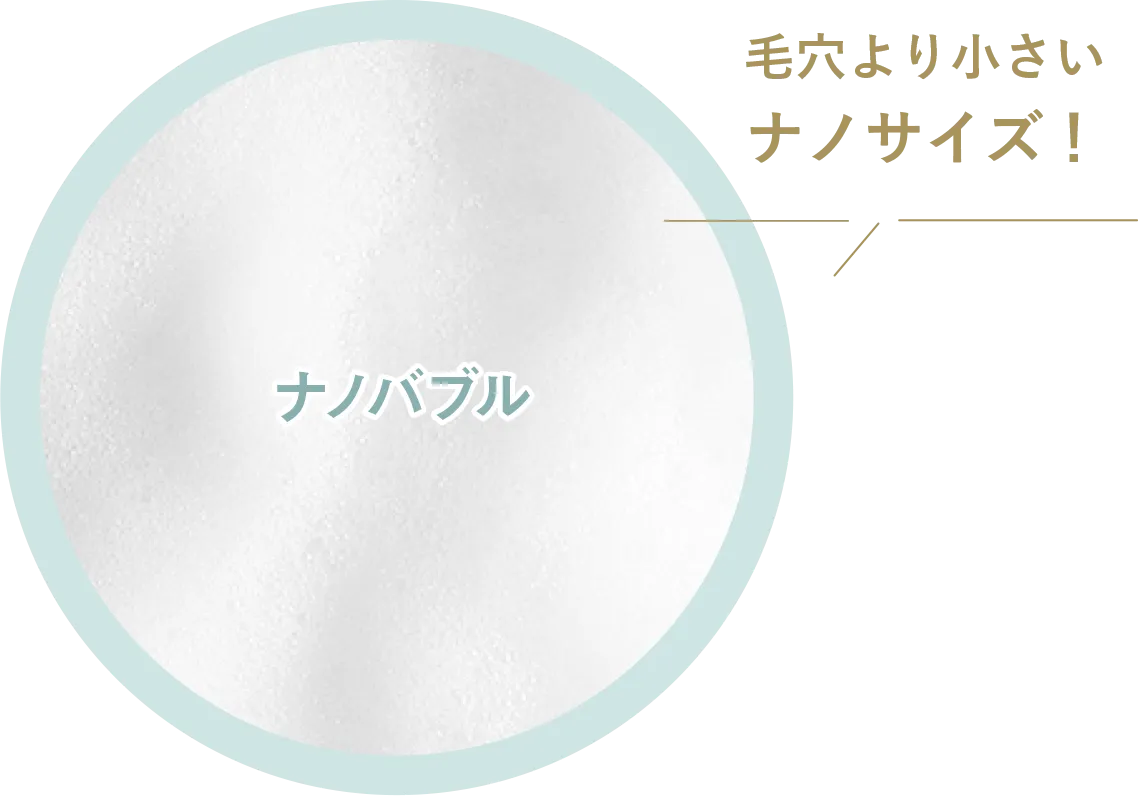 ナノバブルを発生させて毛穴よりはるかに小さいナノサイズの泡をつくります。毛穴の奥までしっかりと入り込み、ナノスパークリングウォッシュの効果を最大限に発揮します。