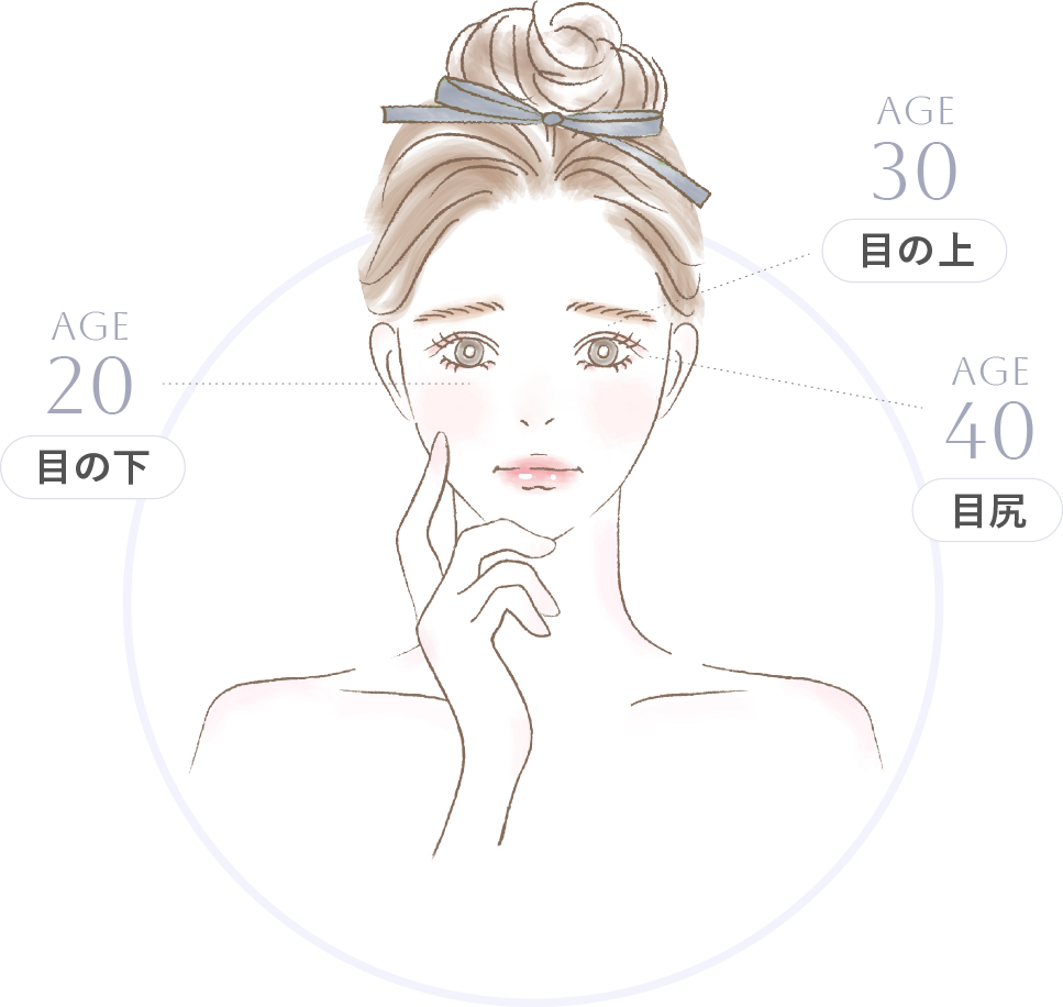 顔の中でくすみ※やシワが現れやすいのがズバリ目元。目の周りは顔の中でも皮膚が薄く、他の部位と比較して皮脂腺が少ないため、乾燥しやすくダメージを受けやすいパーツです。つまり、年齢問わず、くすみ※やシワが現れやすいということです。